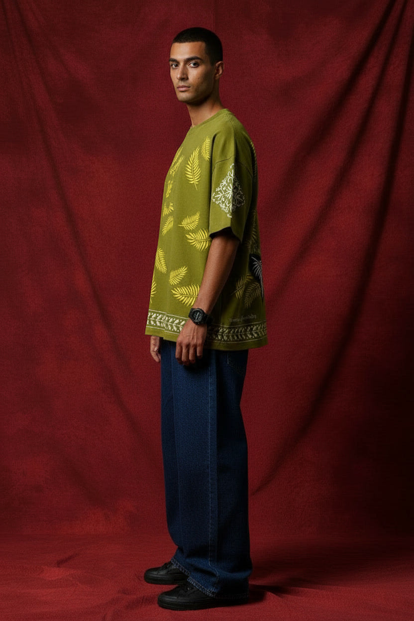 Key Vibe: Fresh, airy, and artistic; a "dance of the garden" captured on premium heavy-weight cotton.